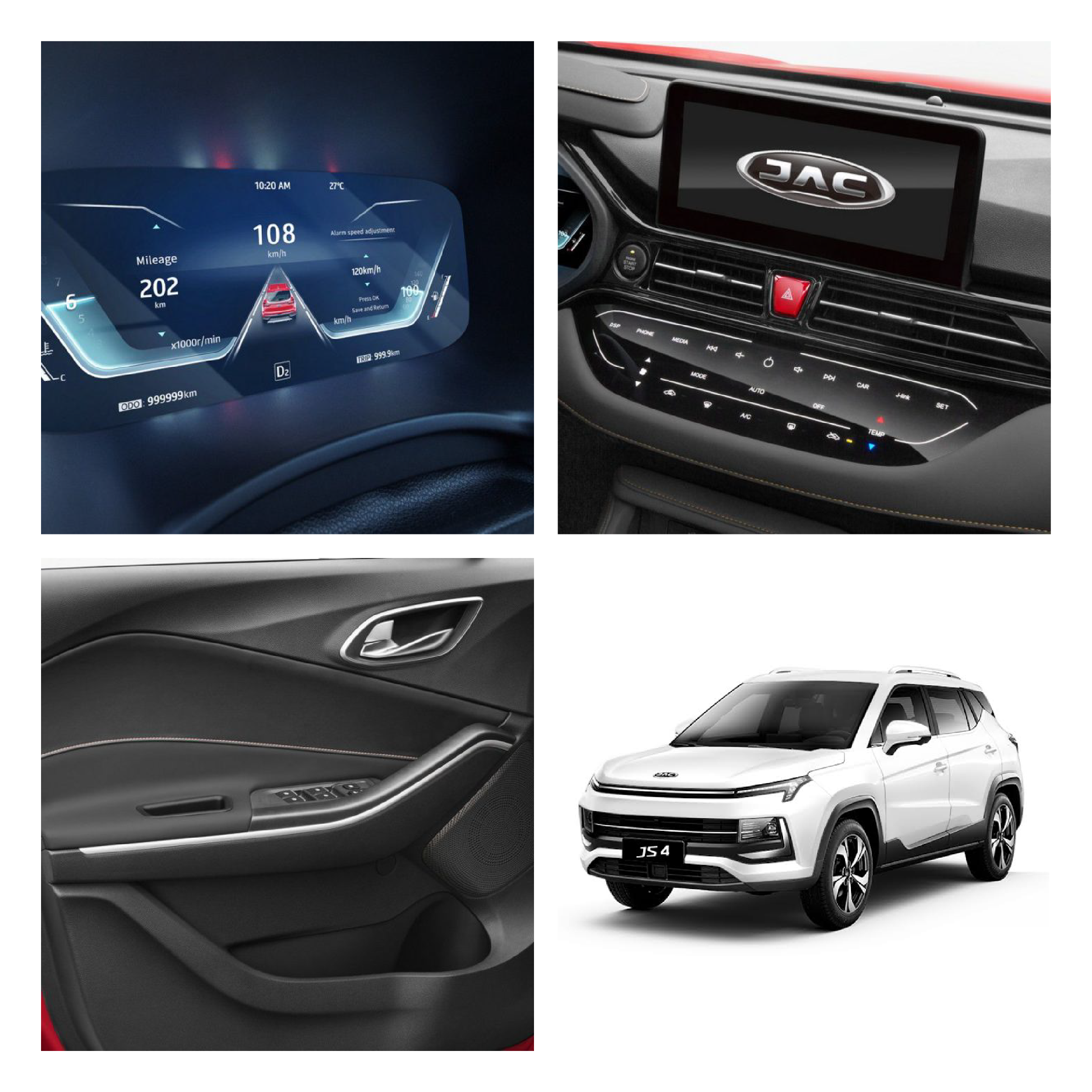 The Jack S4 is classified as a crossover SUV, with dimensions (length – width – height) of 4410 mm, 1800 mm, 1660 mm, and a wheelbase of 2620 mm. It weighs 1800 kg.The exterior of the Jack S4 is characterized by sleekness and a youthful, eye-catching appearance. It features distinctive LED headlights and a prominent chrome front grille in the center of the front fascia. On the side, there are 17-inch sport wheels, electrically folding side mirrors, and a sunroof. Moving to the rear of the car, there are LED taillights, rear glass areas, and a 520-liter storage space